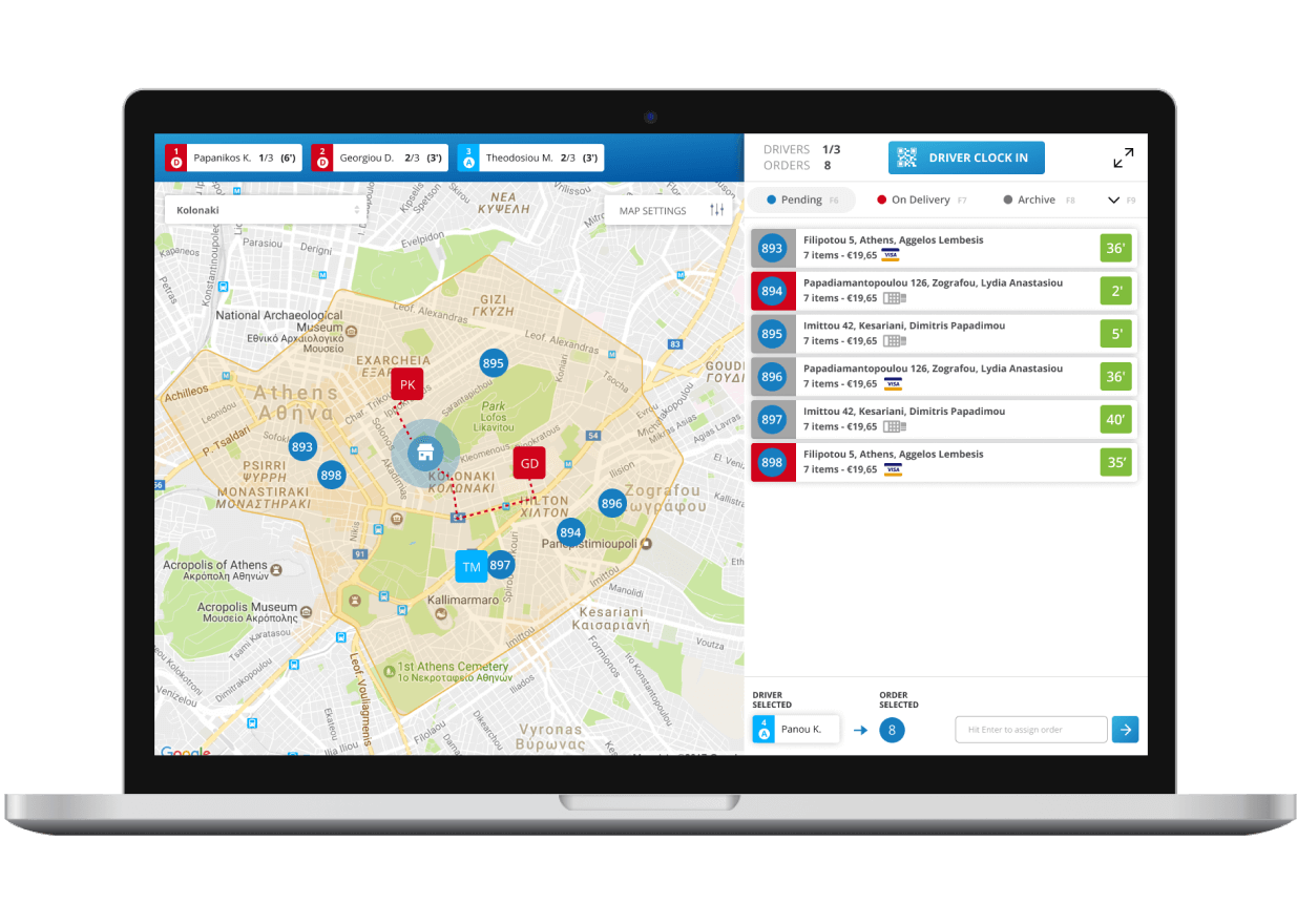 The system automatically assigns orders ready to deliver to the first available driver, efficiently from the delivery station without the need of delivery slips, barcode scanners or dedicated dispatch managers.
